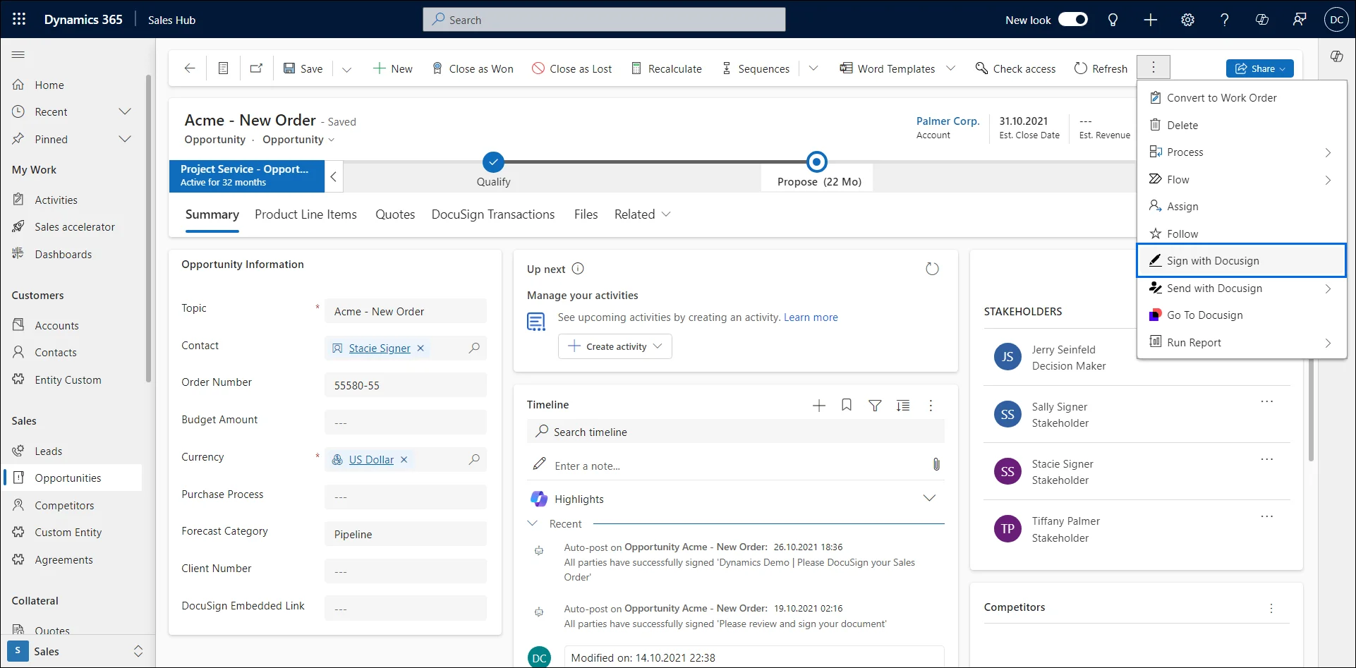 Use Case: Send and track digital signatures directly from Dynamics 365.